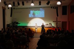 Dass sie gleich bei der Premiere einen voll besetzten Saal begrüssen dürften, das übertraf die Erwartungen bei weitem, meinten die Moderatoren Joel und Katharyna zu Beginn der Veranstaltung. So wurden während dem Countdown noch weitere Sitzgelegenheiten herbeigeschafft und punkt 19.00 Uhr durften die Anwesenden live in eine persönliche Worship-Time eintauchen.